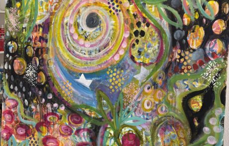 - Verbunden mit dem Körper: Male voller Achtsamkeit. Spüre den Pinsel in deiner Hand, beobachte das Spiel der Materialien, lausche auf die Geräusche, lass dich berühren von der Energie der Farben.