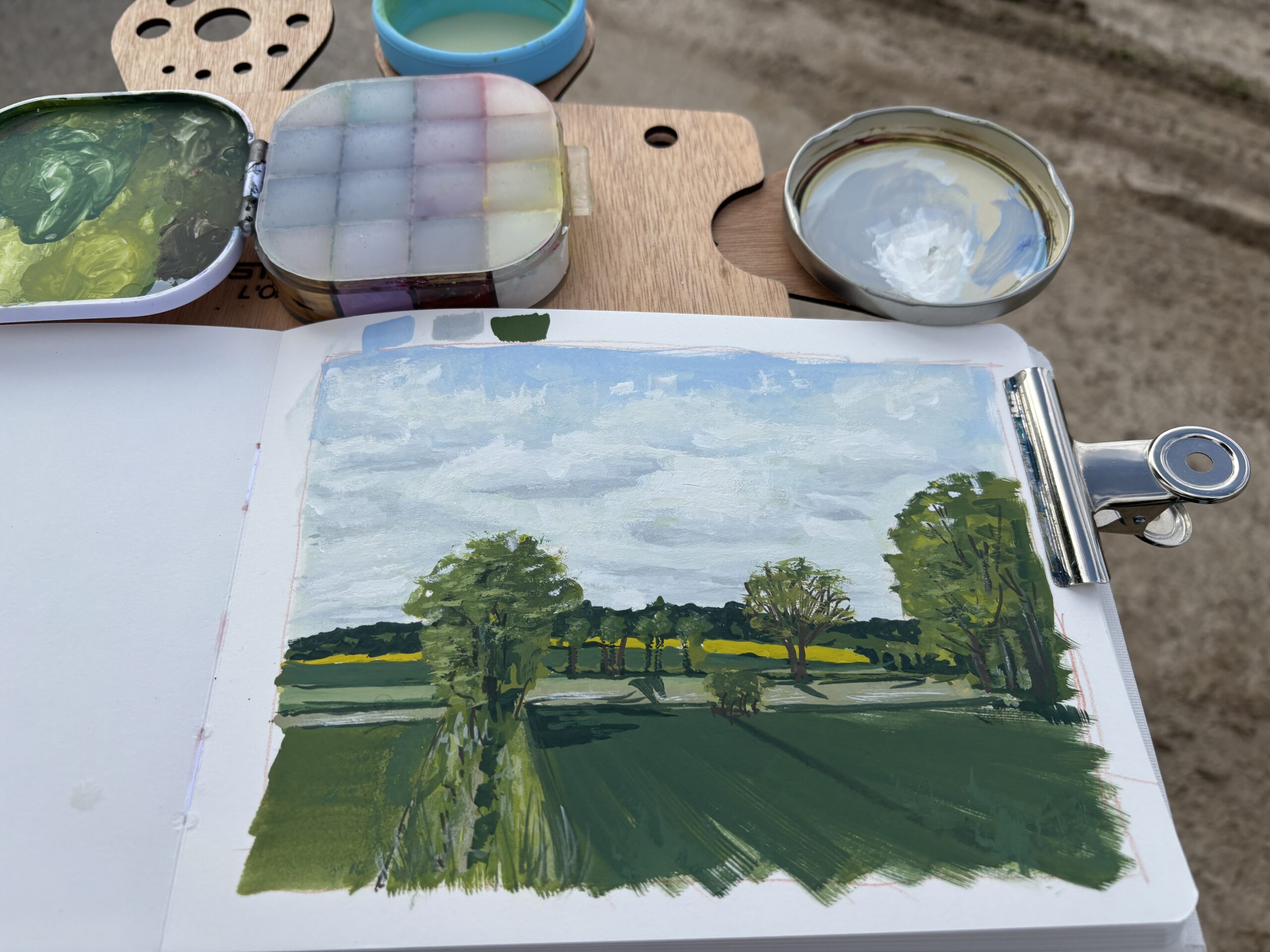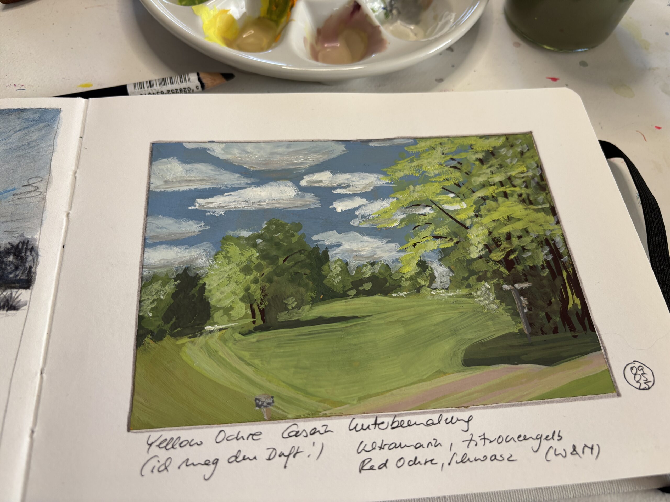 Komm, sei dabei und lass uns gemeinsam die Landschaft um uns herum mit Gouache einfangen.