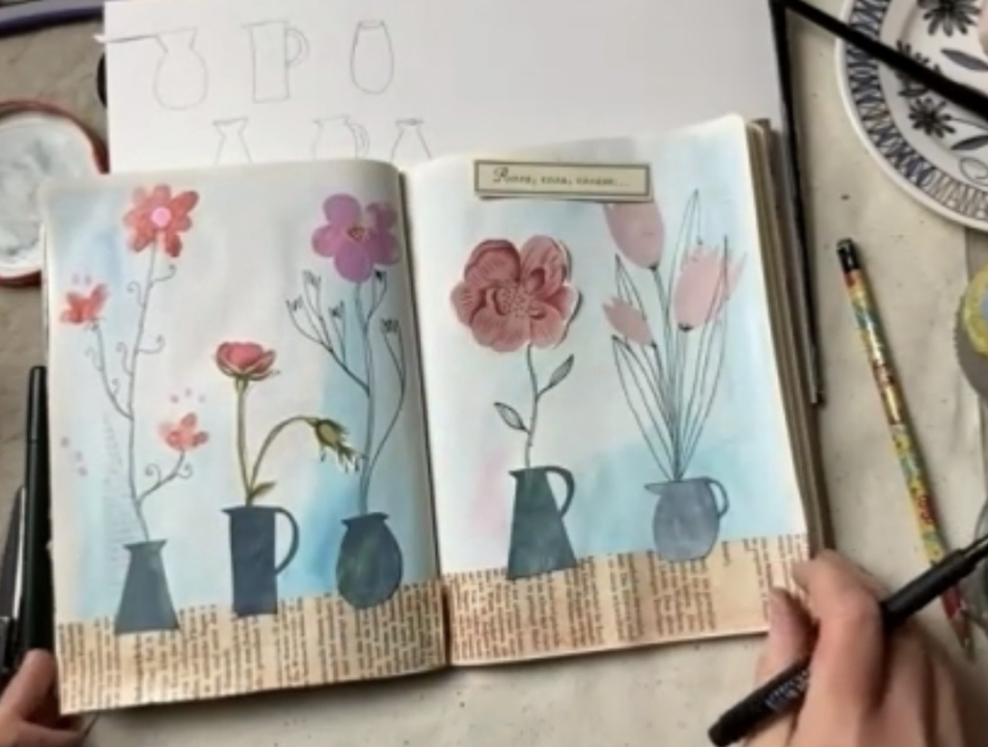 Bei mir findest du Onlinekurse rund ums Malen & speziell Art Journaling: Techniken, Methoden, Reflektieren, Schreiben, intuitives Malen & Achtsamkeit.