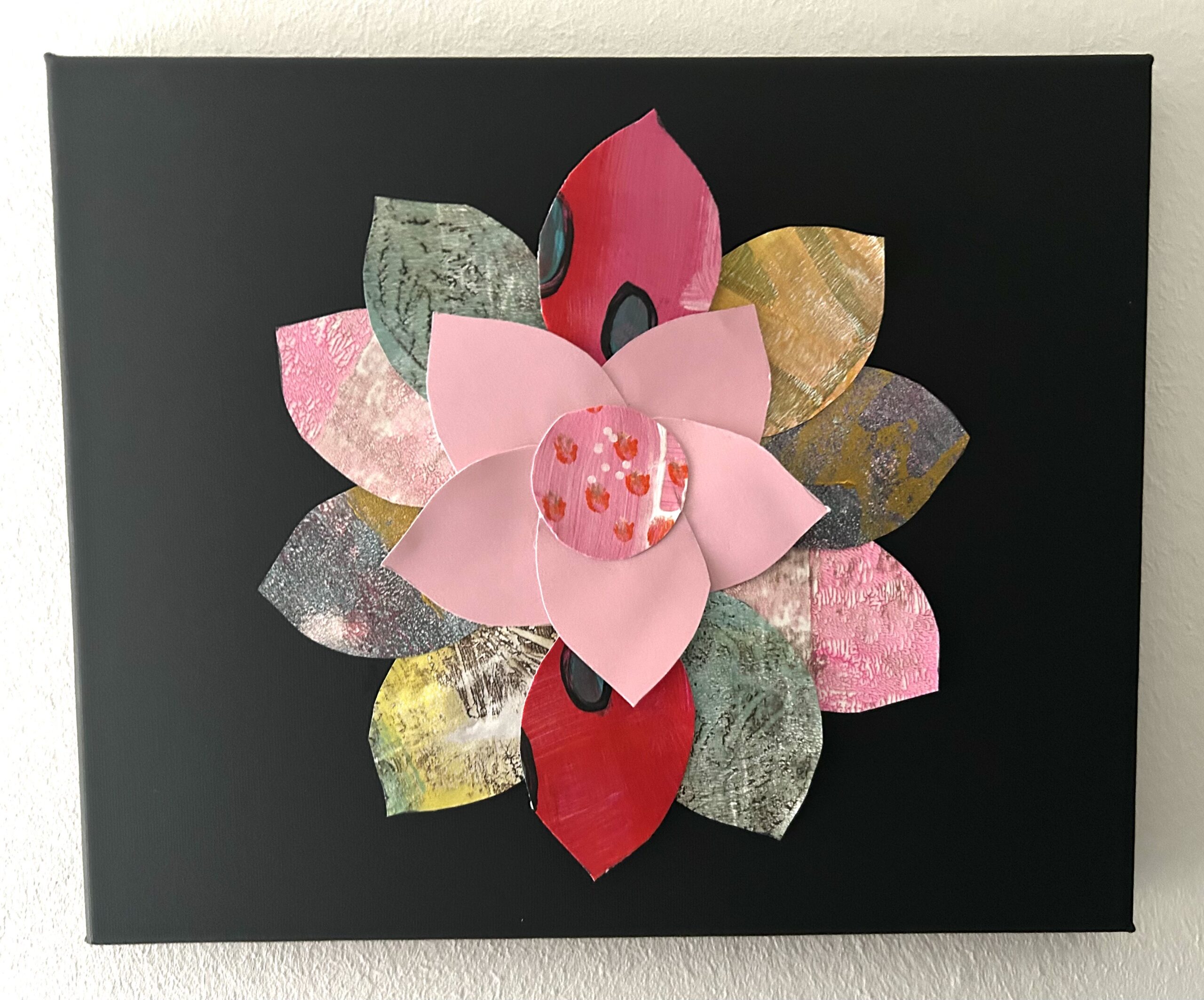 Mit dem Hintergrund als Architektin und Innenarchitektin kann ich bei Mixed-Media dem Impuls folgen, frei und intuitiv zu gestalten. Wie ein Kind, das beim Spielen Zeit und Raum vergisst.